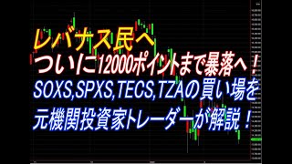 レバナス民へ ついに12000ポイントまで暴落へ!SOXS,SPXS,TECS,TZAの買い場を元機関投資家トレーダーが解説!