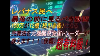 レバナス民へ 暴落の前に見る動画 100万が12億(税引き後)になる売買法を元機関投資家トレーダーが教えます!!(後編)超有料級