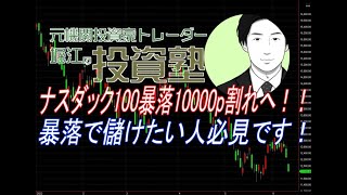 ナスダック100暴落10000p割れへ!!暴落で儲けたい人必見です!