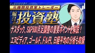 ナスダック、S&P500月足調整の重要ポイントを解説!エヌビディア、ゴールド、ドル円、日経平均の分析も収録