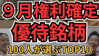 9月権利確定 優待銘柄ランキング|個人投資家100人のイチオシBEST10