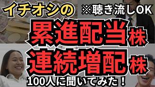 【連続増配】減配しない!今買うべき累進配当銘柄、連続増配銘柄は?100人に聞いてみた!【累進・連続増配銘柄の総集編】
