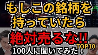 「もしこの銘柄を持っていたら、絶対売るな!」100人に聞いてみた!永久保有できる優良銘柄、高配当銘柄、連続増配銘柄が続々、この株はずっとガチホしましょう!