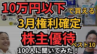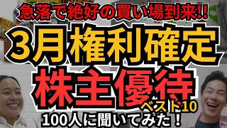 【10万以下×3月優待】今買うべき!10万円以下で買える3月権利確定のイチオシ優待銘柄、100人に聞いてみた!配当4%や総合利回り10%超も!株価急落で仕込み時到来!?