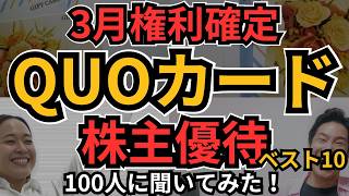 【高配当×QUOカード】3月権利確定、QUOカードがもらえる株主優待、イチオシ銘柄を100人に聞いてみた!配当利回り4%や総合利回り6%超の銘柄も!