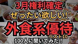 【株主優待】3月権利確定の外食系 優待銘柄、イチオシを100人に聞いてみた!配当3%以上、優待利回り8%や、総合利回り10%超も!優待で楽しくお得に外食を楽しもう!