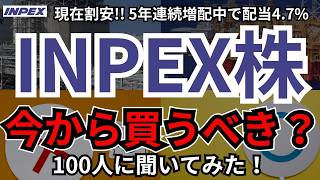 【高配当かつ割安】INPEX株、今から買うべき?買う&買わない双方の意見、いくらなら買い?売り?どうなったら買い?など100人に聞いてみた!