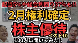【2月の株主優待】5%高配当、総合利回り37%も!2月は〇〇〇系が上位にランクイン。絶対狙いたい!安くなっていたら拾いたい!イチオシの2月優待銘柄、100人に聞いてみた!