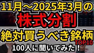 【分割はチャンス】株式分割(11月~2025年3月)絶対買う銘柄、その理由を100人に聞いてみた!業績や配当実績、総合利回り、株価など確認していきます。