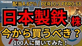 【高配当4.67%かつ割安】日本製鉄株(5401)、今から買うべき?100人に聞いてみた!4.67%の高配当、割安銘柄、鉄は国家なり!社長はUSスチール買収交渉続ける考え!