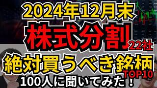 【分割はチャンス】2024年12月末の株式分割、絶対買いたい上昇期待の銘柄と、その理由を100人に聞いてみた!業績や配当実績、総合利回り、株価など確認していきます。