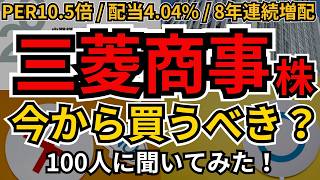 三菱商事株(8058)、今から買うべき?100人に聞いてみた!投資の神様バフェット買い増し中!配当4%×8年連続増配中、しかも現在割安!トランプ関税ショックで仕込み時?