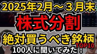 【分割はチャンス】株式分割(2025年2月,3月)絶対買うべき銘柄、その理由を100人に聞いてみた!業績、配当&優待利回り、株価など確認して分割後も株価上昇するか一緒に見ていきましょう。