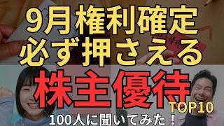 【9月権利確定】今狙ってるおすすめ株主優待、100人に聞いてみた!トップ10発表!必要資金の少なく、お得な優待が次々にランクインしました!