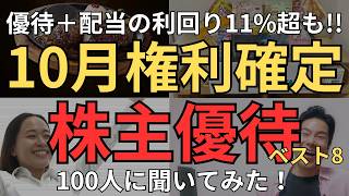 【10月の株主優待】10月権利確定の株主優待、必ず押さえるべき優待銘柄は?100人に聞いてみた!超お得な優待、ベスト8発表!これは欲しい!