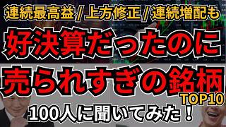 さすがに売られすぎ!好決算なのに株価が下がり過ぎている銘柄、100人に聞いてみた!連続最高益 / 上方修正 / 連続増配も