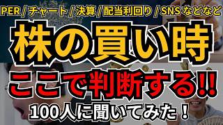 【判断基準】株買う時、どこ見て決めてる?PERから配当利回り、チャートや決算、結局、何で最終判断してる?100人に聞いてみた!