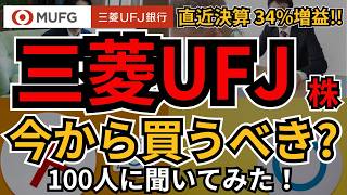 三菱UFJ株(8306)、今から買うべき?100人に聞いてみた!決算34%増益、配当3%超え、4期連続増配のメガバンク、いくらで?どうなったら買い?売り?