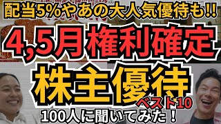 【4月5月の株主優待】今買うべきイチオシ4月5月権利確定の優待銘柄、100人に聞いてみた!高配当5%や大人気優待銘柄も!株価急落でチャンス到来!