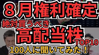 8月権利確定 高配当株ランキング|今買うべきBEST10【100人に聞いてみた!】