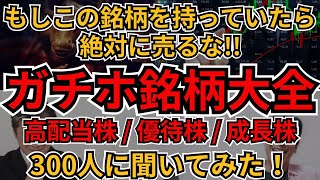 【ガチホ銘柄大全】もし持っていたら絶対売ってはいけない「高配当株・優待株・成長株」個人投資家300人に聞いてみた!