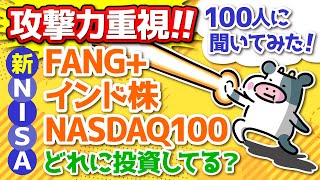 【新NISA 攻撃力重視】FANG+ vs NASDAQ100 vs インド株 どれ買ってる?100人に聞いてみた!1位はアレ!神コメントばかりだった!