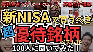 新NISAで買うべき優待銘柄、高配当株や増配株、長期保有で株主優待がグレードアップする銘柄など、新NISA向きのイチオシ優待銘柄、100人に聞いてみた!