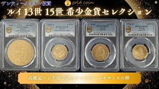コインコレクター必見!レア金貨4選ルイドール黄金譜:ルイ13世と15世の希少金貨セレクション モダンリストライク×高鑑定×レア度で語るフレンチ・ルネサンスの粋