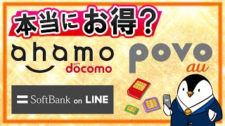 【本当にお得?】ahamo・povo・SoftBank on LINE、3大キャリアの新料金プランを徹底比較!