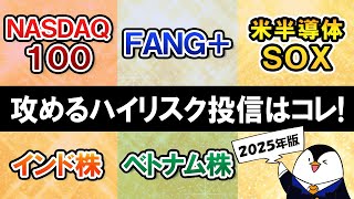 【2025年】ハイリスクハイリターンで積極的に攻める際のおすすめ投資信託は?NASDAQ100/FANG+/SOX/インド株/ベトナム株など