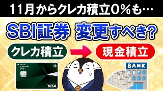 【必ず確認】SBI証券のクレカ積立の還元率が11月から変更に…クレカを使わないと0%!この機会に現金積立に変更すべき?
