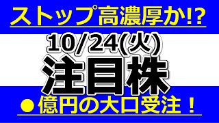 ストップ高濃厚か!?●億円の大口受注!【10月24日(火)の注目株】明日のストップ高候補株・株式投資の参考に