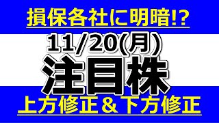 損保各社に明暗!?【11月20日(月)の注目株】明日のストップ高候補株・株式投資の参考に