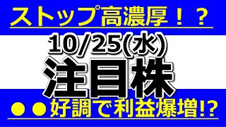 ストップ高濃厚!?●●好調で利益爆増!?【10月25日(水)の注目株】明日のストップ高候補株・株式投資の参考に