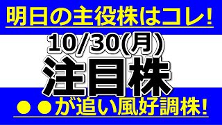 明日の主役株はコレ!●●が追い風で絶好調!【10月30日(月)の注目株】明日のストップ高候補株・株式投資の参考に