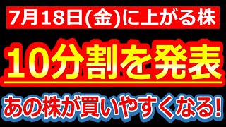 【ぶっ壊れ分割きた!買いやすさ10倍で思惑爆発中!】7/18(金)に株価が上がる株・明日上がる株・来週上がる株・株式投資日本株最新情報