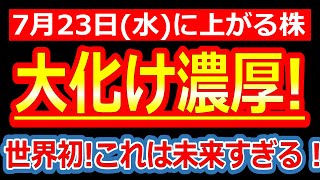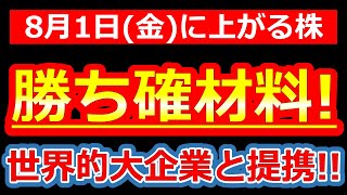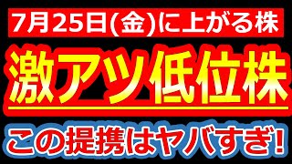 【この提携はヤバすぎ!激アツ低位株!】7/25(金)に株価が上がる株・明日上がる株・来週上がる株・株式投資日本株最新情報