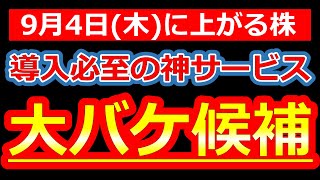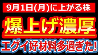 【インパクト強すぎ!好材料コンボ炸裂で爆上げ濃厚か!?】9/1(月)に株価が上がる株・明日上がる株・来週上がる株・株式投資日本株最新情報
