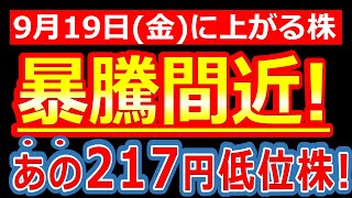 【たった217円の低位株に激アツ材料でた!株主還元の最強手段!大規模株式消却を実行】9/19(金)に株価が上がる株・明日上がる株・来週上がる株・株式投資日本株最新情報
