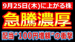 【減益予想から大逆転!配当“100円増額”の衝撃発表!】9/25(木)に株価が上がる株・明日上がる株・来週上がる株・株式投資日本株最新情報
