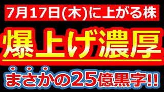 【業績非開示→超サプライズ】まさかの25億黒字でAI本命が覚醒!7/17(木)に株価が上がる株・明日上がる株・来週上がる株・株式投資日本株最新情報