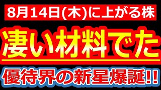 【優待投資界の新星】6.6%利回り&デジタルギフト、攻めすぎじゃない?8/14(木)に株価が上がる株・明日上がる株・来週上がる株・株式投資日本株最新情報