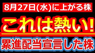 【これは熱い!新たに累進配当を宣言した株】8/27(水)に株価が上がる株・明日上がる株・来週上がる株・株式投資日本株最新情報
