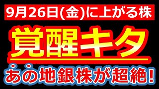 【ついに覚醒!?あの地銀株が予想超えの快進撃!】9/26(金)に株価が上がる株・明日上がる株・来週上がる株・株式投資日本株最新情報