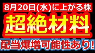 超絶材料でた!将来的に配当爆増可能性アリ!?【8/20(水)に株価が上がる株・明日上がる株・来週上がる株・株式投資日本株最新情報】