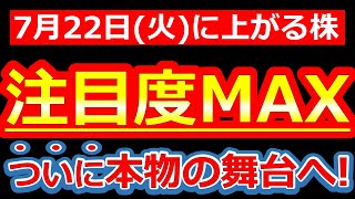 【ついに来たぞ…グロース卒業!“本物の舞台”に上がる準備はできている!】7/22(火)に株価が上がる株・明日上がる株・来週上がる株・株式投資日本株最新情報