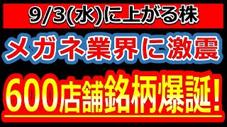 メガネ業界に激震!“600店舗メガネ帝国”が誕生!【9/3(水)に株価が上がる株・明日上がる株・来週上がる株・株式投資日本株最新情報】