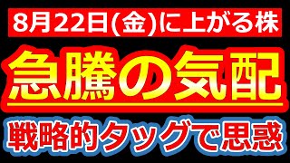 【一大ニュース!あの企業×AIスタートアップが描く未来像】8/22(金)に株価が上がる株・明日上がる株・来週上がる株・株式投資日本株最新情報】