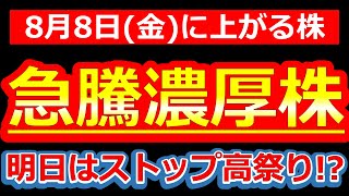 【エグイ決算多過ぎる!860社の中から厳選した超絶決算はコレだ!】8/12(火)に株価が上がる株・明日上がる株・来週上がる株・株式投資日本株最新情報