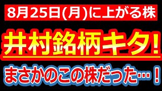 【ついに判明!井村ファンド“3銘柄目”はまさかのこの株だった…!】8/25(月)に株価が上がる株・明日上がる株・来週上がる株・株式投資日本株最新情報